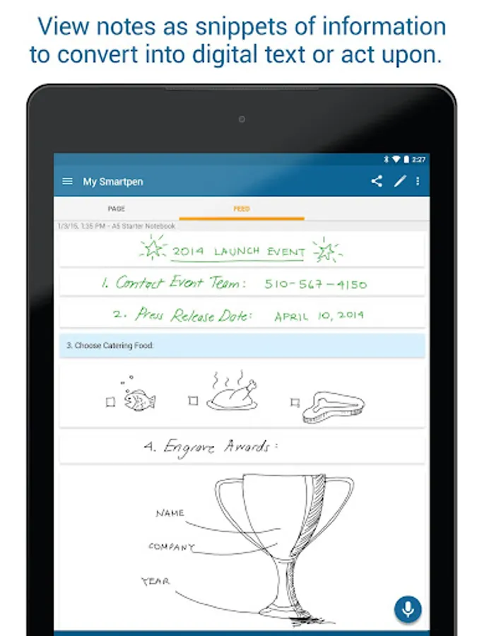 - Notes, sketches, diagrams and drawings created with your Livescribe smartpens show up instantly on your smartphone or tablet