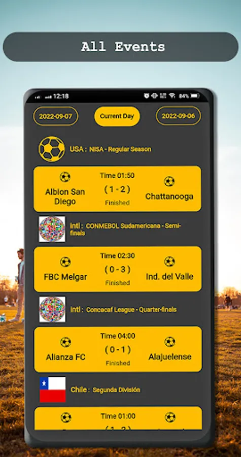 Live Football Goals & Scores is such user-friendly application to get soccer score, you just have to click on all events option to get football scores. Enjoy this application with all football tips and stats. Here are few features to notice for goal and live score;