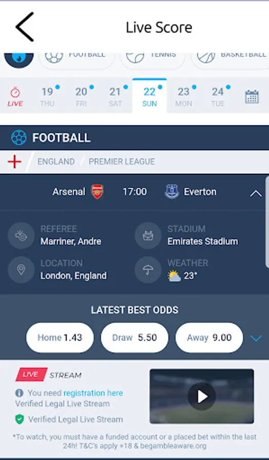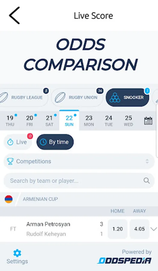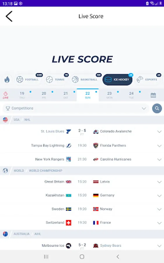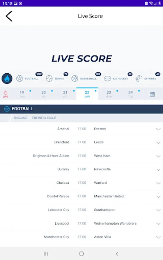 We have all your favourite sports in one App
