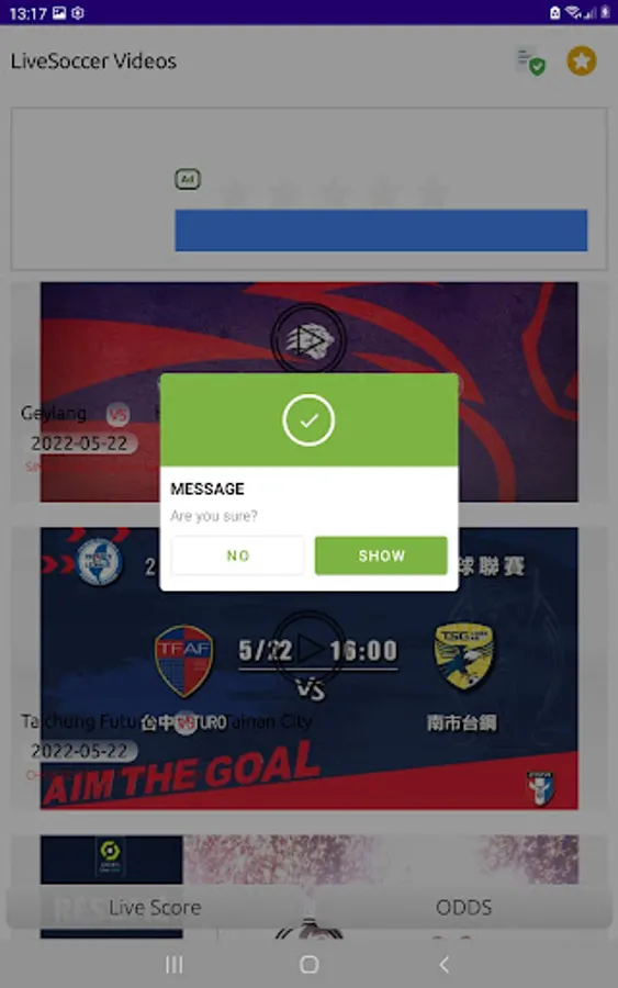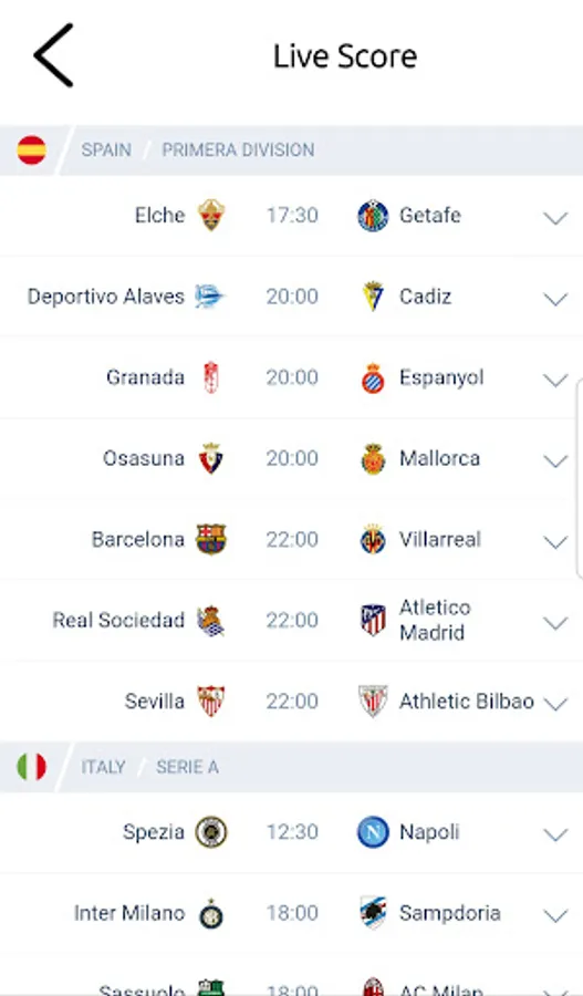 Get the list of all matches and with just one click you will get real time updates for matches inline.