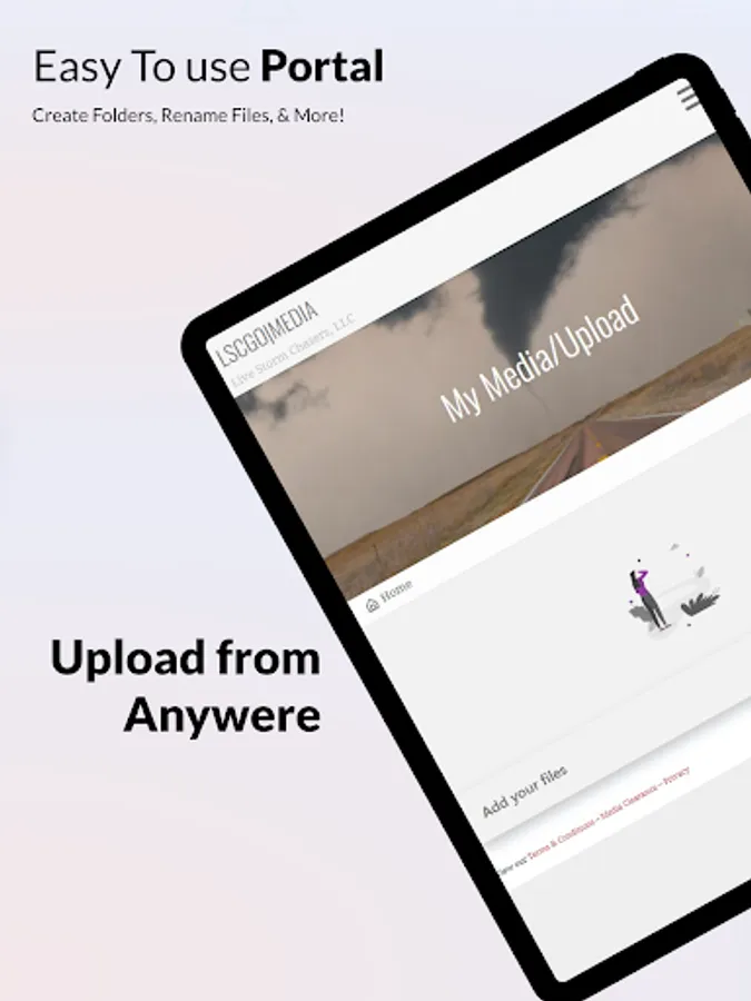 The LSCGo software from Live Storm Chasers allows users to upload, manage, and share media while on the go. Storm Chasing or a Breaking News story are excellent examples!
