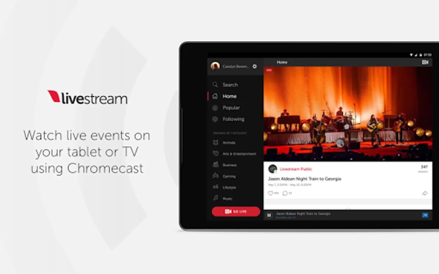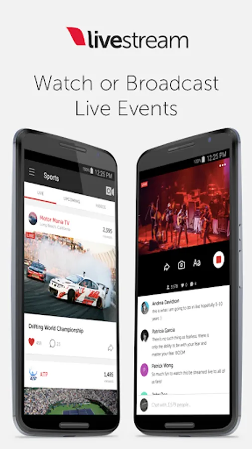 Broadcast live from your phone or tablet to viewers watching on Facebook, Twitter, Livestream or any other website. Engage with viewers via the built-in chat.