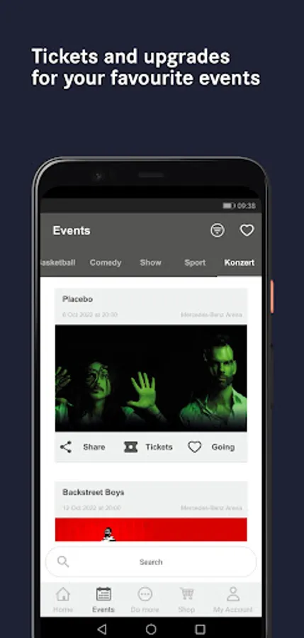 - Event calendar: All events at Mercedes Platz, Verti Music Hall and Mercedes-Benz Arena at a glance. You can also save events directly in your calendar.
