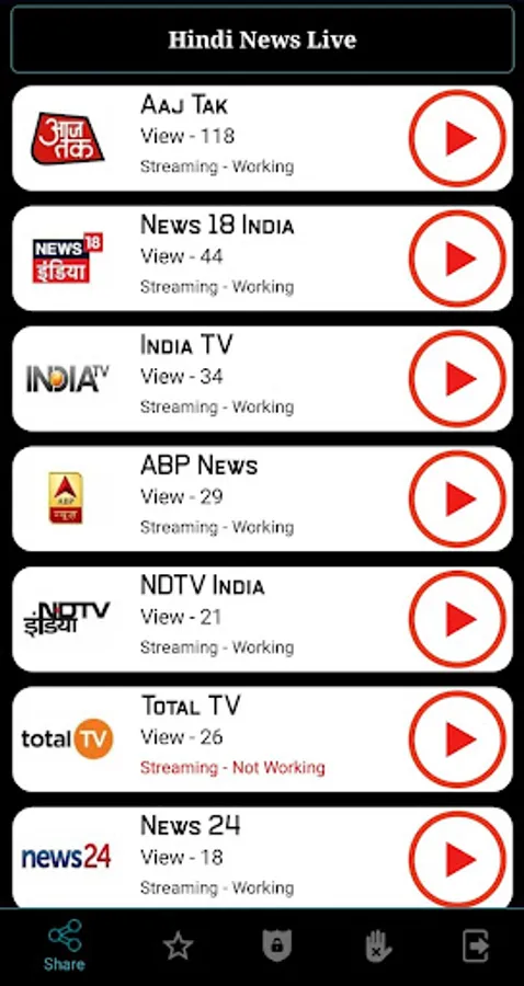 Get latest Hindi News updates on this App in Android. Live TV Hindi News Apps brings to you Live News from major Hindi News channel. You will never miss out any your favorite News Channel. You will get free live TV News Streaming in Android App and Live TV about India News, World News, Sports News, Entertainment News.