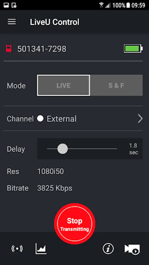 LiveU Control is the ultimate companion app to manage your LiveU equipment while on the move. Simply login with your LiveU Central credentials and you're off! Quickly select a group of units to manage, dive into a single unit and you can start, stop, change the delay, channel, and other important parameters such as network settings; one tap to see bitrate graphs, and with LU2000 version 7.0 (and higher) even the video preview.
