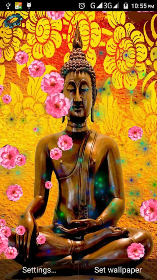 Worship Lord Buddha, the destroyer of all obstacles, right on your Android device. Install this animated live wallpaper which performs "Pushpa Vrushti" on God Buddha.