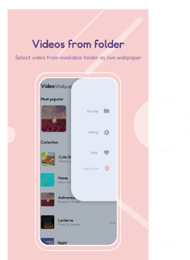 Video Live Wallpaper changer and lock screen app. Wide variety of high quality fullHD and Parallax wallpapers suitable for all phone screens.