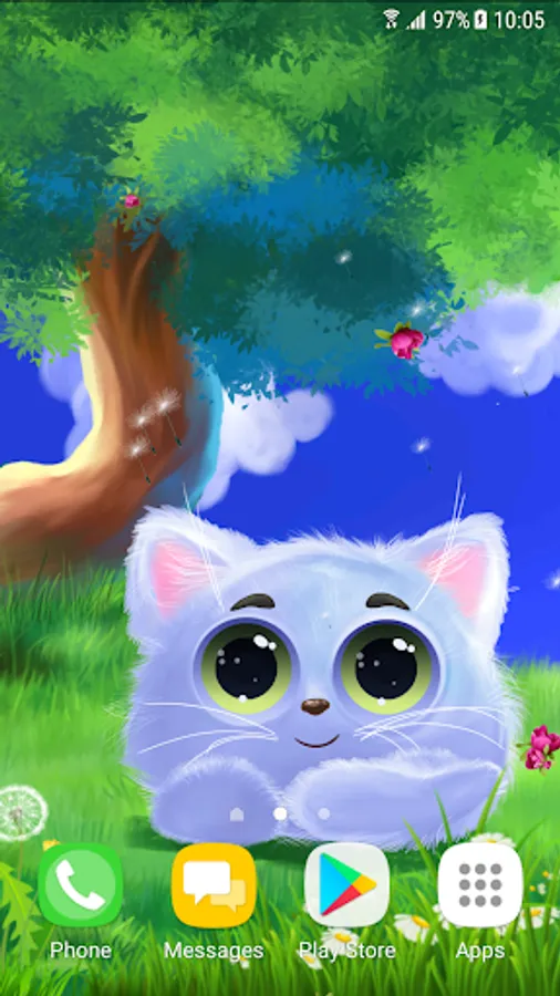How to set this free cute live wallpaper on the home screen of your phone: Home → Applications → Settings → Display → Wallpapers → Home screen wallpaper → Live wallpapers → Animated Cat Live Wallpaper