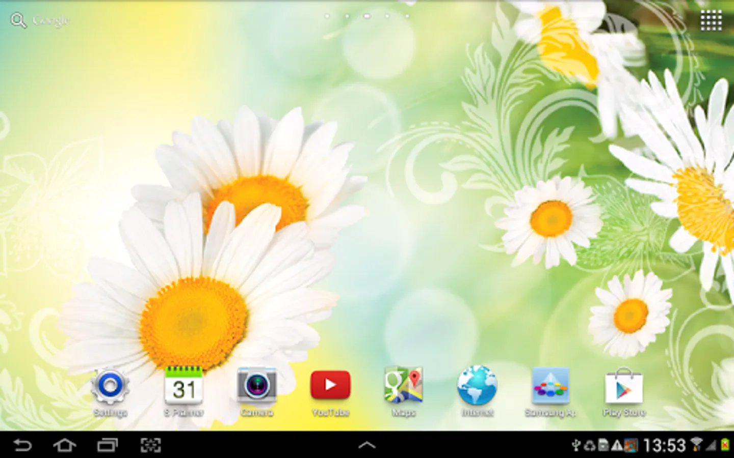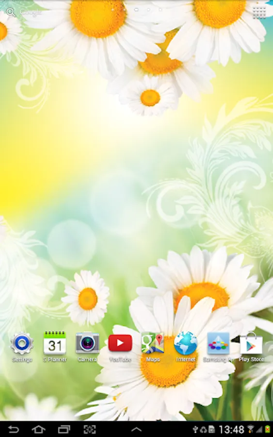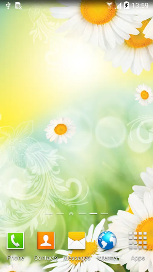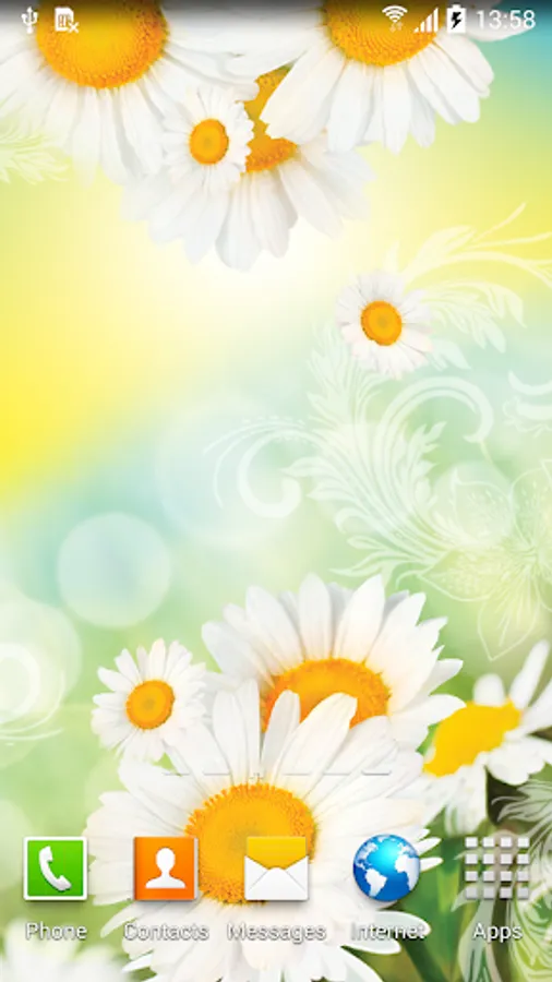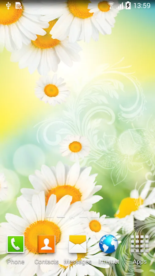 How to set this flowers live wallpaper on the home screen of your phone: Home → Applications → Settings → Display → Wallpapers → Home screen wallpaper → Live wallpapers → Camomiles Live Wallpaper