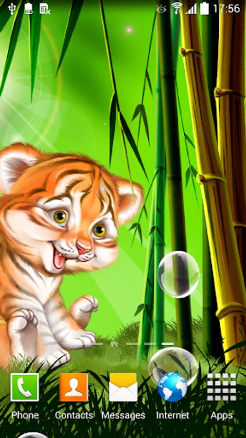 Super cute animated wallpaper "Cute tiger cub live wallpaper" will lift your mood and cause lots of smiles at you and your friends. Enjoy sweet animated little tiger cub, soap bubbles that can be bursted by touch, flying interactive glowworms and much more.
