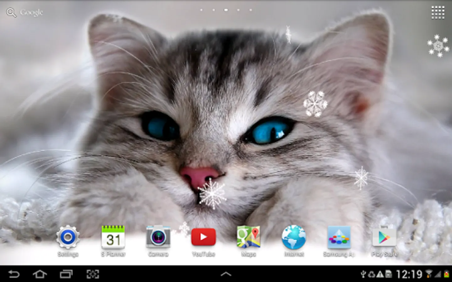 Cute winter live wallpaper is a beautiful animated screensaver with falling 2D / 3D snowflakes, frozen window effect (frost flowers), live water effect, set of cute winter backgrounds and much more.