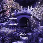 - photo-realistic background: oriental garden at night (japan garden) in HD quality
