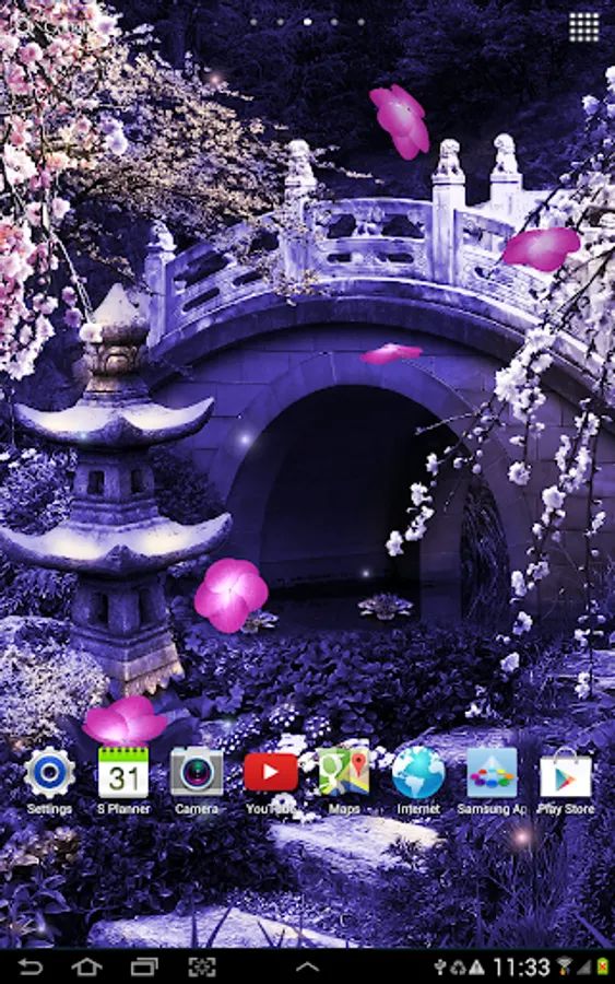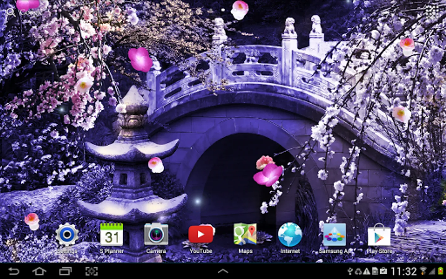 Mysterious East is associated with the beauty of the cherry blossoms (Sakura). In the spring, when nature comes alive in beautiful oriental gardens cherry trees blossoms and fragile cherry petals, flowers and leaves falls down, people come there to enjoy the beauty of the Japanese cherry blossom. Now thanks to our Mystic Sakura Live Wallpaper you also have opportunity to enjoy Sakura in the mystic oriental garden at night.