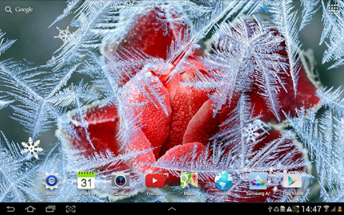 Frozen flowers live wallpaper is a beautiful animated screensaver with falling 2D / 3D snowflakes, frozen window effect (frost flowers), set of winter backgrounds and much more.