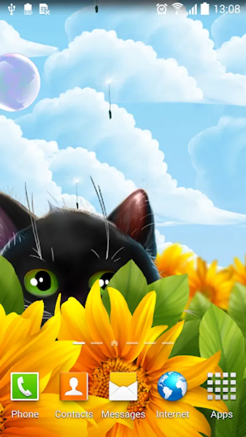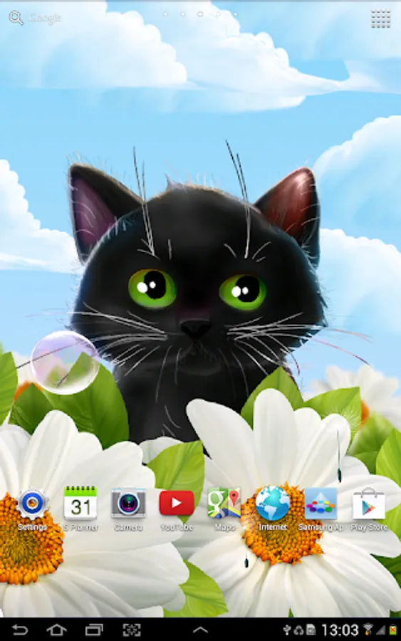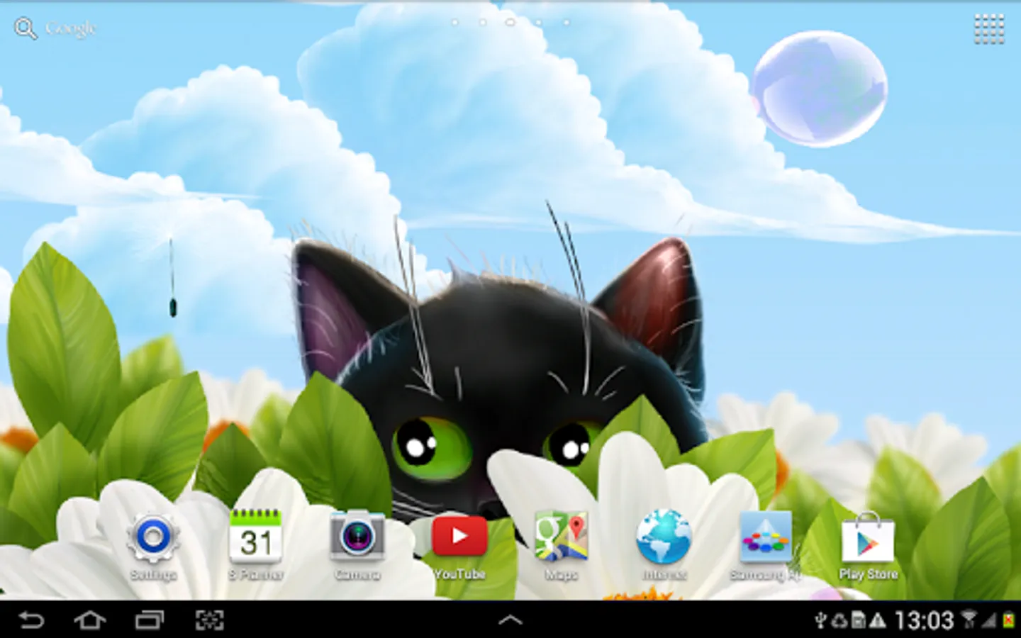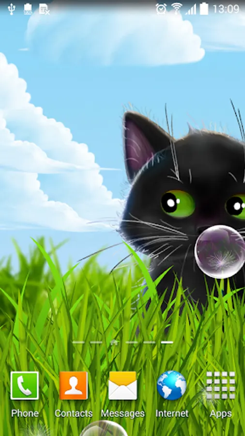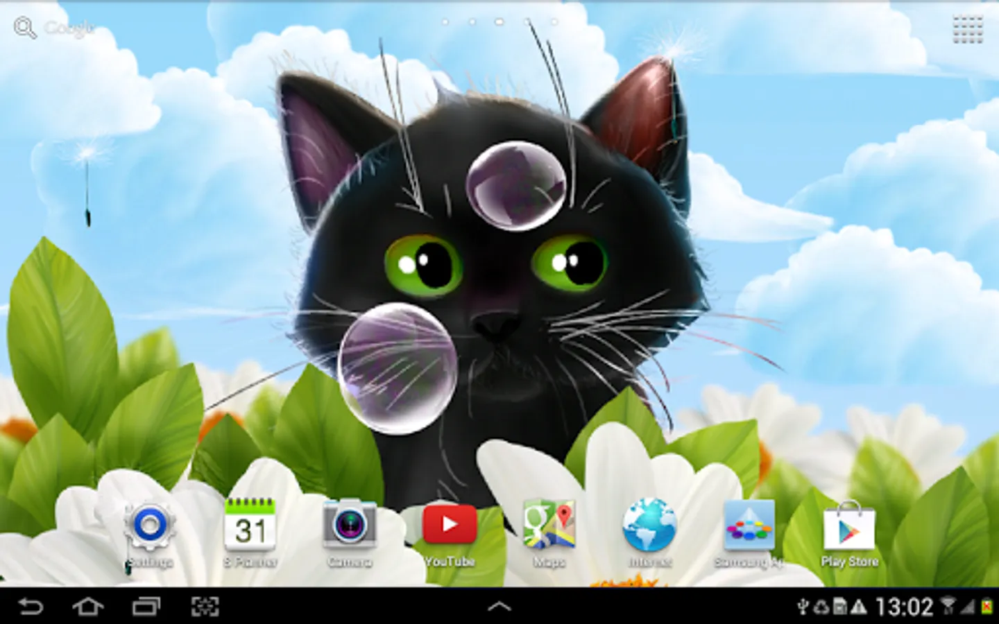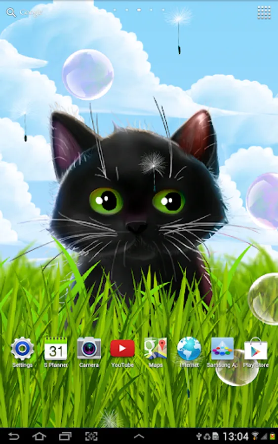 Cute Kitten Live Wallpaper - beautiful free live wallpaper with a pretty cute animated kitten, animated flying dandelion seeds, soap bubbles that can be burst by touch, set of beautiful backgrounds, lots of settings and much more.