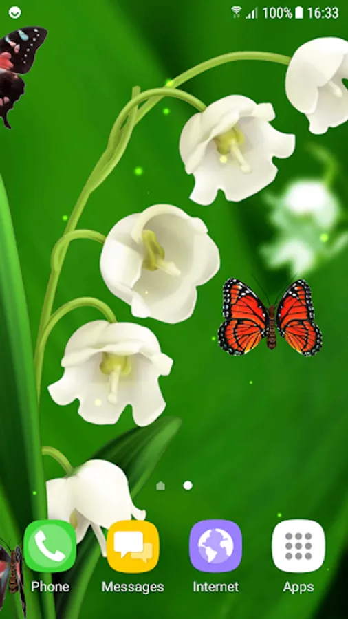 Lily of the valley live wallpaper - free amazing live wallpaper with stunning 3D multi-layered parallax effect, animated dynamic 3D butterflies, fireflies, set of 7 HD beautiful spring flower backgrounds. Touch the screen and see how colorful 3D butterflies fly from your finger. Download this free 3d parallax theme app now, it will be an excellent decoration for your Android phone or tablet.