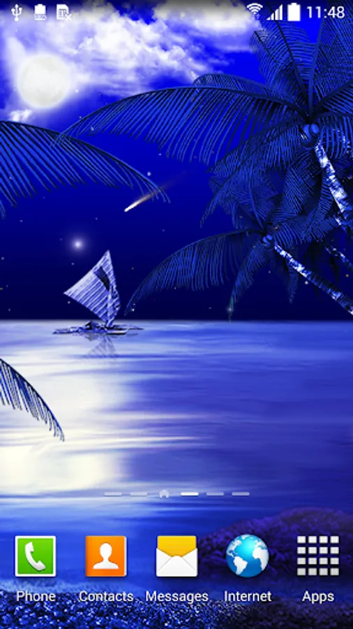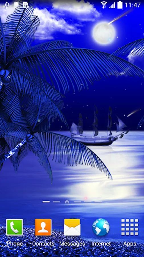 Night Beach Live Wallpaper — free wallpaper for all of you who truly enjoy summer and exotic holiday destinations, with wonderful night beach image, live water effect, animated clouds, animated sailing ships, sandy beach and palm trees. Relax in this tropical paradise at night near the live water, listen to the soothing sound of summer ocean waves crashing on the shore.