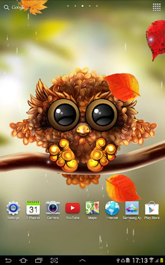 How to set this autumn wallpaper with little owl on the screen of your phone: Home → Applications → Settings → Display → Wallpapers → Home screen wallpaper → Live wallpapers → Owl Live Wallpaper