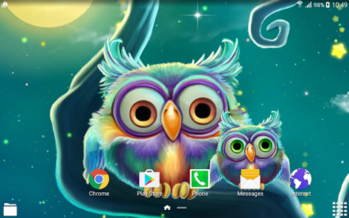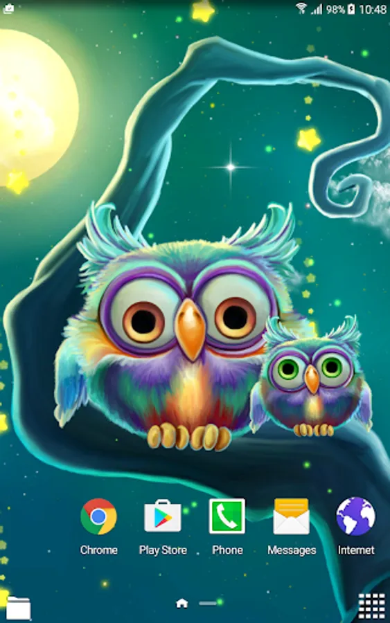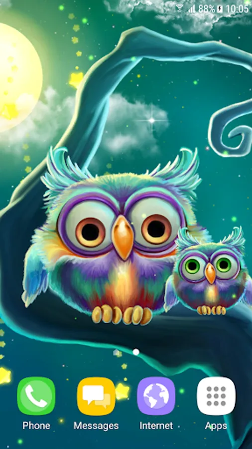 How to set this free wallpaper with little owls on the screen of your phone: Home → Applications → Settings → Display → Wallpapers → Home screen wallpaper → Live wallpapers → Cute Owls Live Wallpaper
