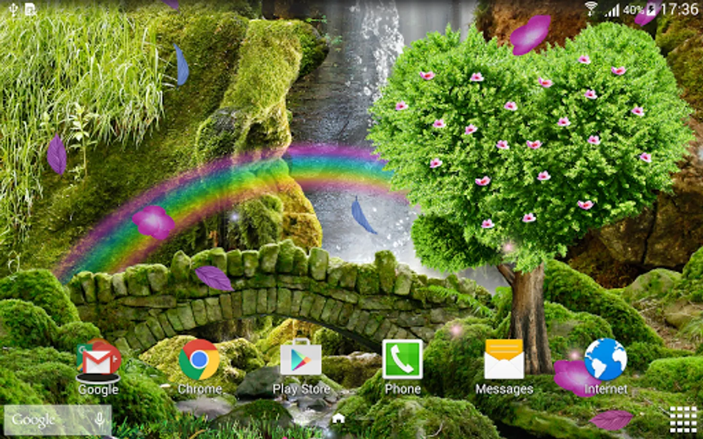 How to set this free romantic wallpaper on the home screen of your phone: Home → Applications → Settings → Display → Wallpapers → Home screen wallpaper → Live wallpapers → Romantic Waterfall Live Wallpaper