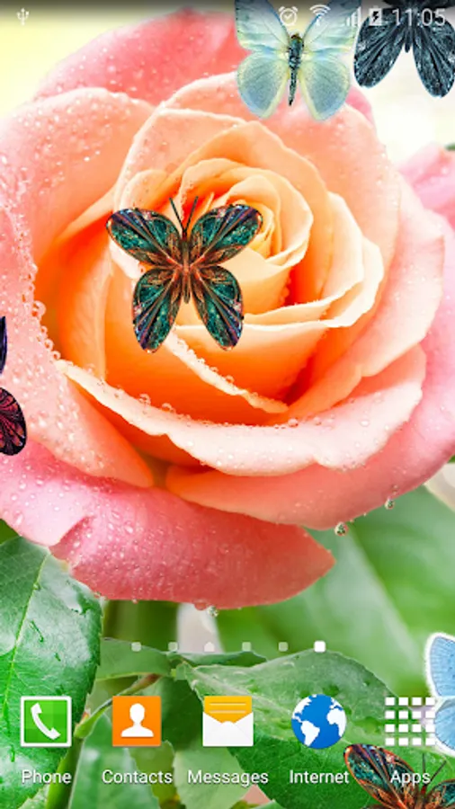 Roses live wallpaper – beautiful free live wallpaper with set of roses photos pictures, amazing live water effect that simulates water ripple effect (water drops effect), animated butterflies, falling flowers and much more. Install this free animated screensaver now it will be a great decoration for your Android phone or tablet.