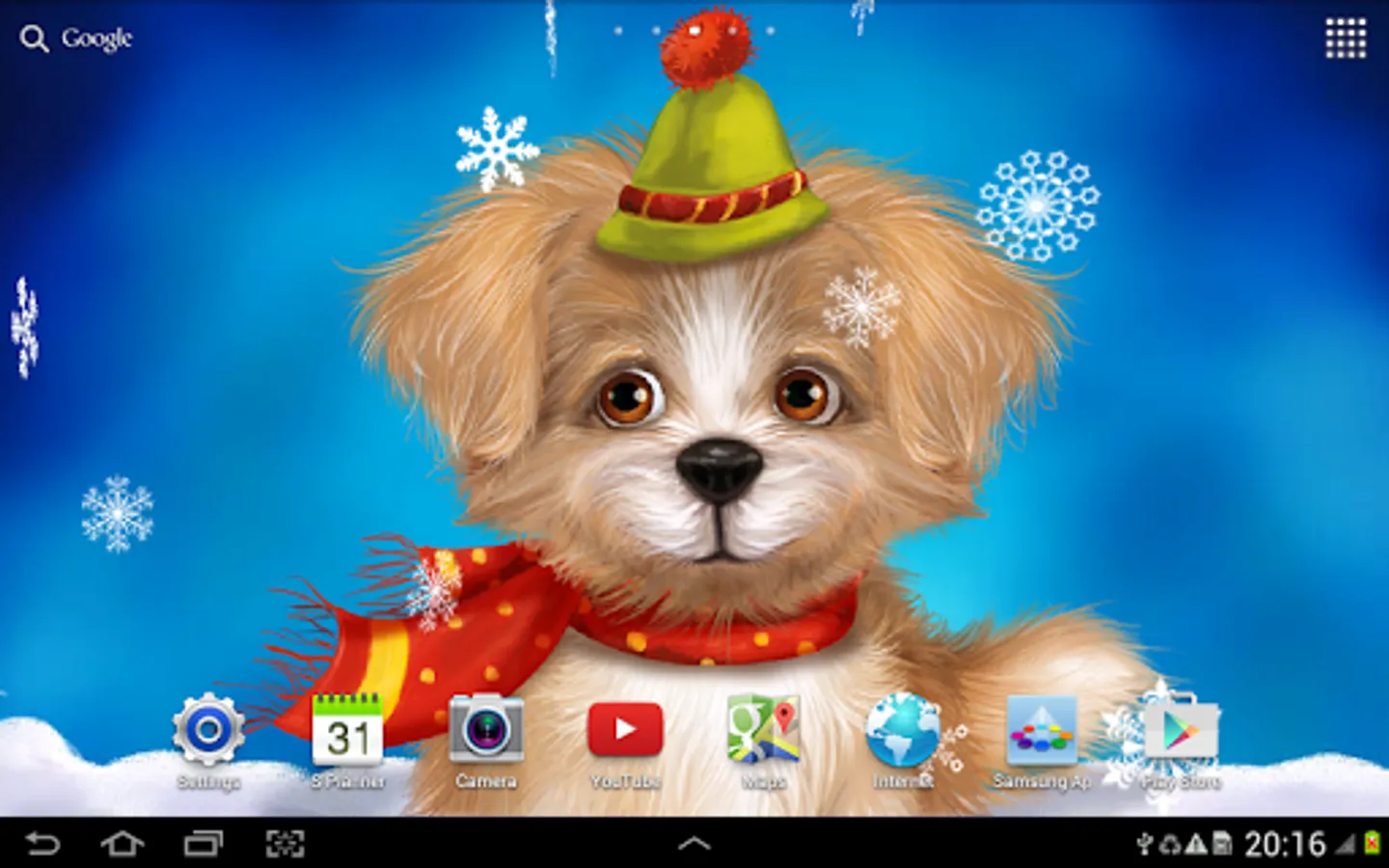Animated live wallpaper “Cute Puppy” for Android will be a great decoration of your smartphone or tablet. Application is interactive: dog watching finger, snowflakes fly from your touch. A lot of settings and effects will help make your device special and beautiful graphics will please you every winter day.