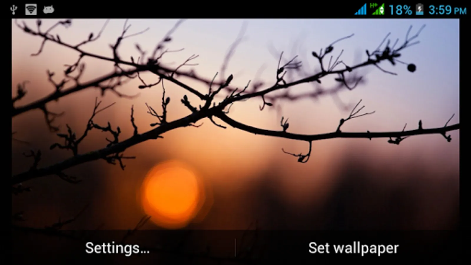 Home>Menu>Wallpaper>Live Wallpaper>SN Nature Live Wallpapers (Pro) or Press and hold home button (screen) Live wallpapers and SN Nature Live Wallpapers (Pro), or from settings (create and open shortcut to SN Nature Live Wallpapers (Pro)).