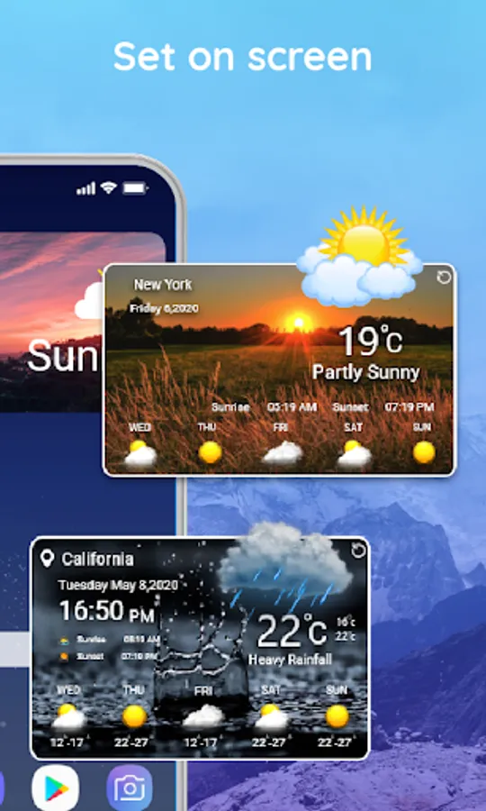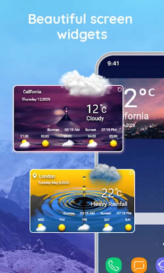Set beautiful weather widgets on your device and see weather information anytime, without open this Local weather forecast: weather radar & wind map app. Multiple beautiful weather widgets are added in this Local weather forecast: weather radar & wind map app. Live weather forecast on beautiful weather widgets. Multiple beautiful and eye catching widgets are added in this Local weather forecast: weather radar & wind map app.