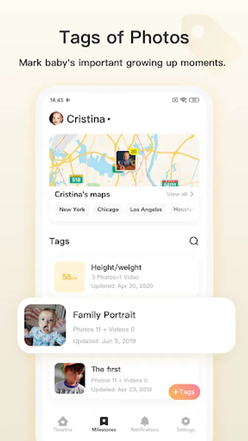 Track your baby's growth, milestones, and development, view all your baby's footprints on the map.