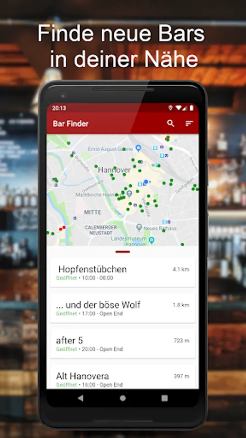 The app is a small pilot project by two boys (Florian & Fabian) from Hanover. That's why we decided to start in Hanover, as we already know a few bars here.
