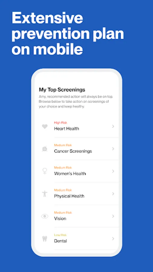 The Livez app recalculates seamlessly to meet health organization protocols. But adapts to your age, health plan, location, risk factors and personal and family history. Automatically.
