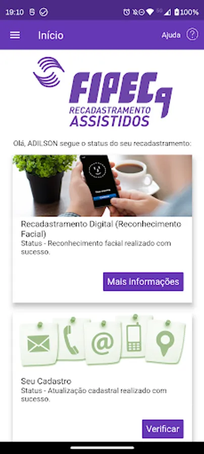 Application intended for FIPECq Previdência Participants to carry out the re-registration processes, through an artificial intelligence solution that uses facial and document recognition.