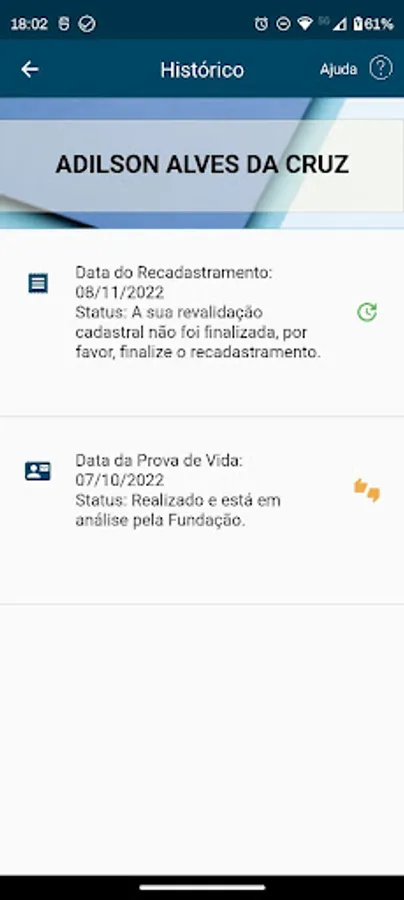 Application that provides participants of Fundiágua - Fundação da Previdência Complementar with carrying out the proof of life process, through an artificial intelligence solution that uses facial and document recognition.