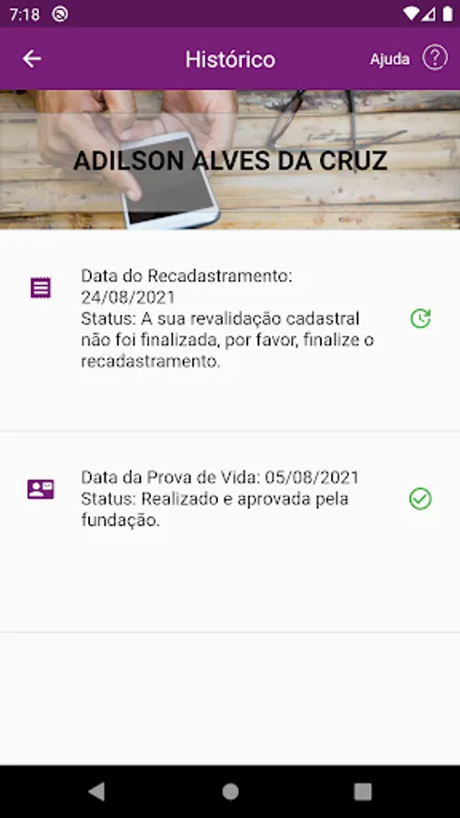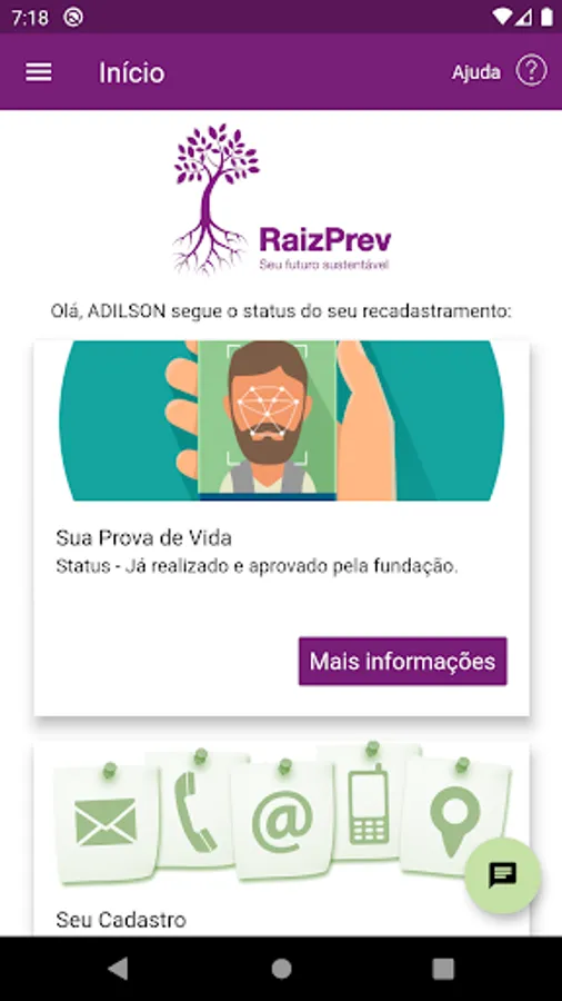 RaizPrev Life Testing and Re-registration application, which helps pensioners/assisted through an artificial intelligence solution, using facial and document recognition.