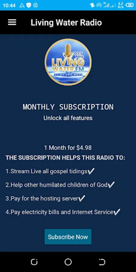 At the moment you have an option to use this app if you have devices such as computer or iPhone or any device that can't install this app you can directly use this website https://kenyaflix.com/radio to smoothly tune into Living Water Radio