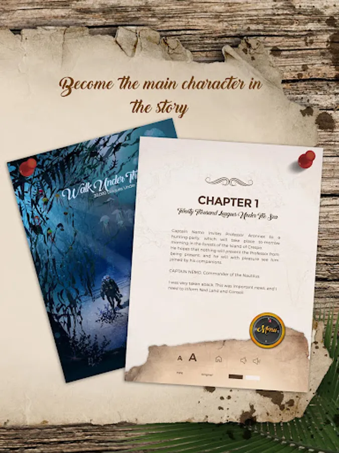 Maybe you are wondering how deep is 20000 leagues, or you have heard about the battle with the squid from Nemo, you will have to download our interactive book app to learn more bout this and many more details.