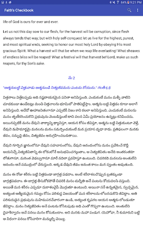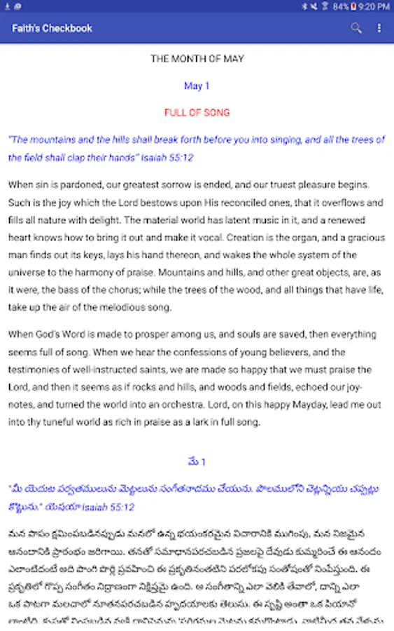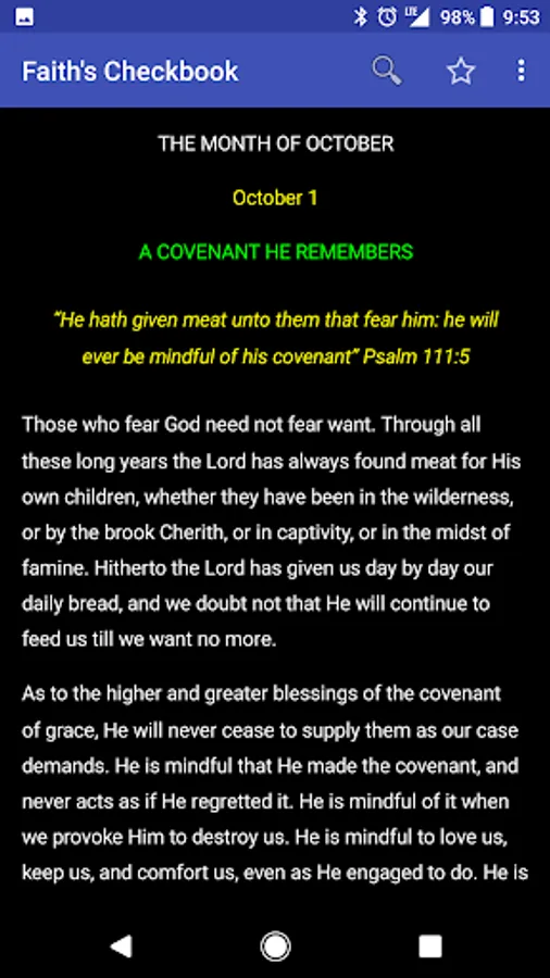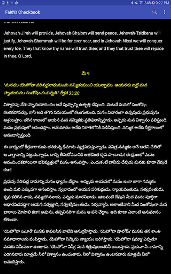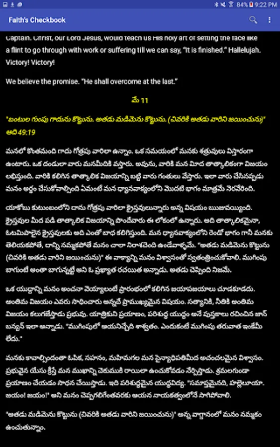 This Faith's Checkbook devotional contains precious promises arranged for daily use with brief experimental comments. May the Holy Spirit, the Comforter, inspire the people unto salvation and greater faith by claming these precious promises.