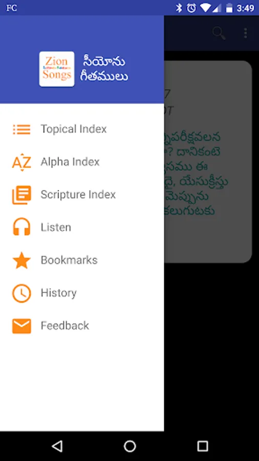 Zion Songs Telugu (సీయోను గీతములు) app to listen, sing, search, bookmark and refer at all times.