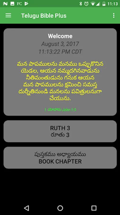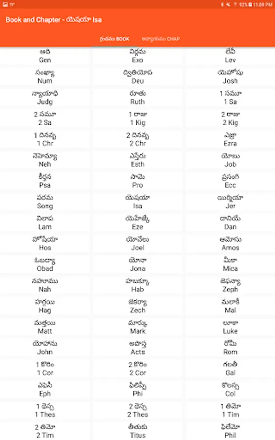 11) Telugu Bible with elegant interface to pick book and chapter.