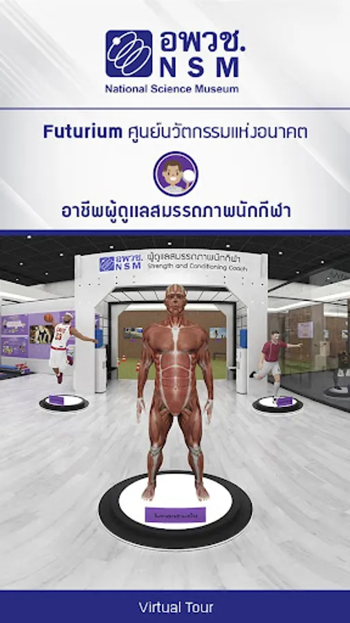 In a 360-degree format, you will find a professional coach, strength and conditioning coach, responsible for the process to develop the potential and ability of the athlete to achieve maximum readiness and integrity. Both physical and mental, and technical skills in sport during the competition as well as systematically developing to the highest individual competency, such as providing rehabilitation and advice on proper muscle management for athletes Or those injured in sports Design exercise programs to increase muscle performance Cardiovascular system Study of the symptoms of athletes To perform rehabilitation treatment Save obstacles Problems in the operation and report preparation requires skills as practitioners. Be patient and careful. Pay attention to health. Have a passion for sports Accept to listen to the opinions of others Striving for knowledge and technology Have a good relationship Have good communication skills In addition, you will have fun from games, videos, content content. As if visiting a real museum Just at your fingertips