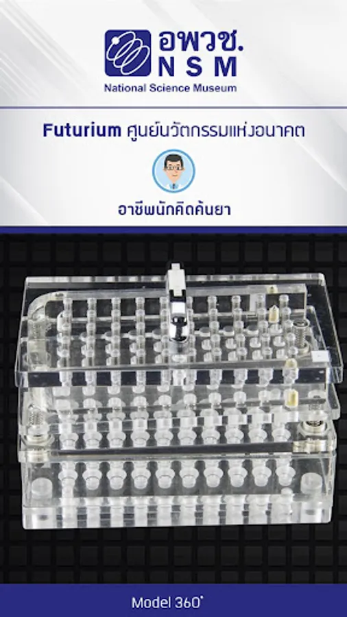 In a 360 degree format, you will find a career in drug discovery. (Pharmaceutical Scientist) is a profession that brings concepts and theories in pharmacy. Chemistry science Used in drug preparation Or mix the formulas In addition, drug inventors also test the drug to know what is the drug. Extract the drug to be pure and concentrated. Participate in the development of rules and regulations Write reports and scientific journals As well as performing work related tasks and supervising other practitioners, requiring skills to pursue knowledge, love research, keep track of academic articles In addition, you will have fun from games, videos, content content. As if visiting a real museum Just at your fingertips