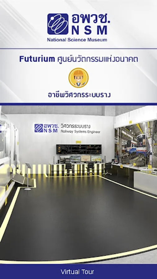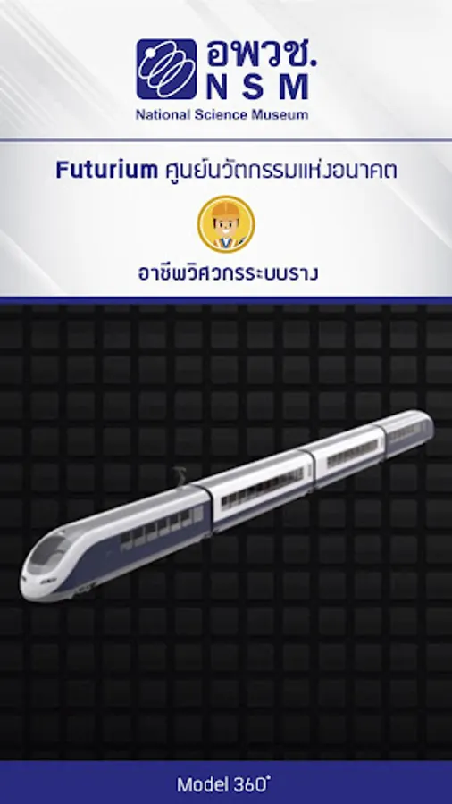 In a 360 degree format, you will find a professional railway system engineer working on rail transportation systems. Design, construction and maintenance of rail infrastructure Repair - build a locomotive, trailer Electric transmission system Signaling and telecommunication systems Including planning and controlling operations for car marches In order to develop an efficient rail transportation system, skills, passion and passion for railroad systems are required. Responsible for the work that is done and constantly develop, have knowledge, know, plan, be patient, like challenges, be careful, careful and have high accuracy. Able to solve immediate problems In addition, you will have fun from games, videos, content content. As if visiting a real museum Just at your fingertips