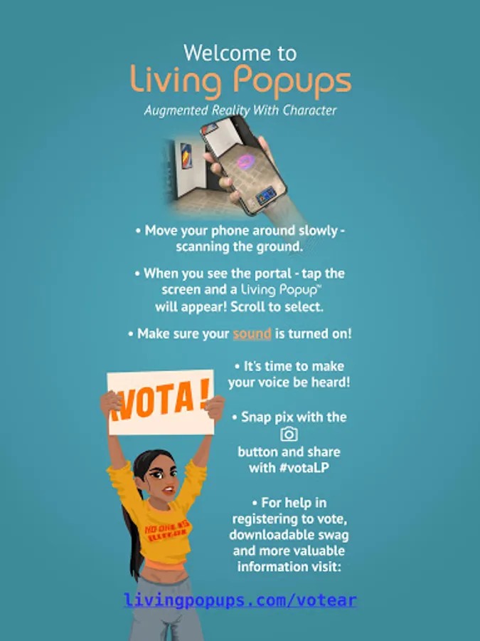 vote!AR is an entertaining/interactive AR experience that encourages users to register to vote and gives a link to resources that help in the process.