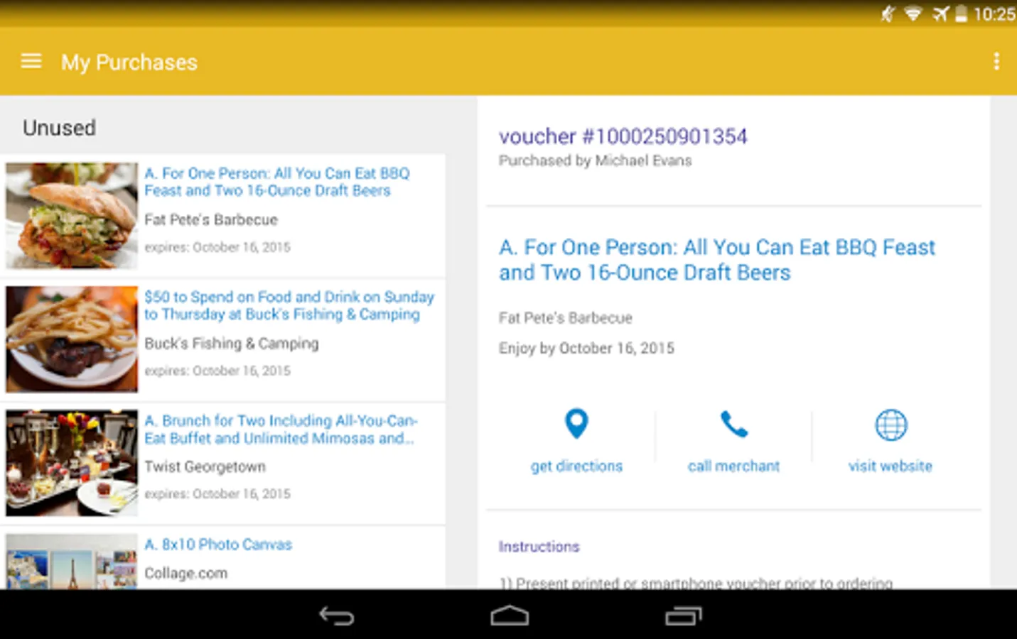 • Buy and redeem LivingSocial deals directly from your mobile device.