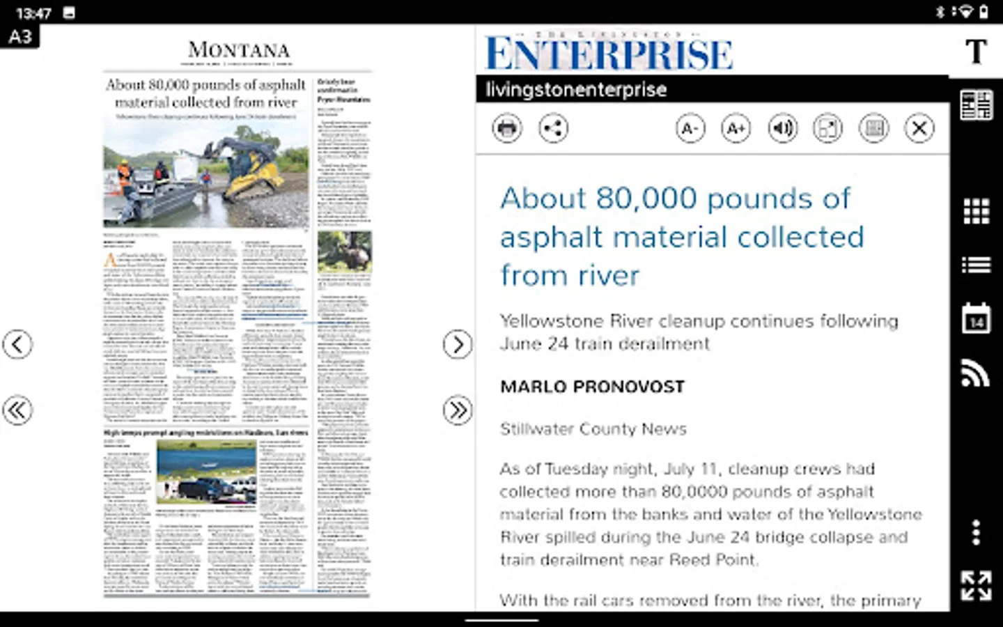 This is a digital replica of the printed newspaper
