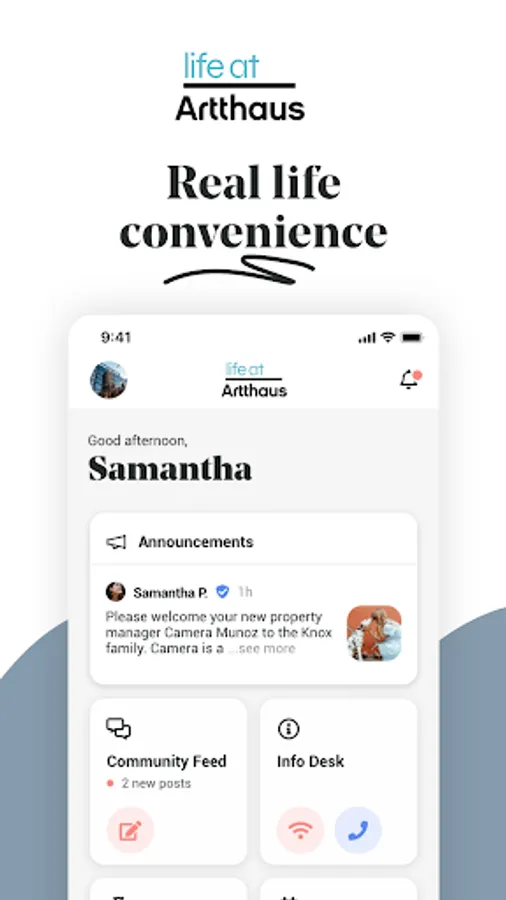 Once you're settled in, Life at Artthaus transforms into a trusted sidekick. The app is the home base for all your needs. Pay your rent, submit requests to building management, receive detailed package notifications, and choose from a marketplace of convenient goods and services. Oh, and look out for exclusive offers for Artthaus Residents and Members.