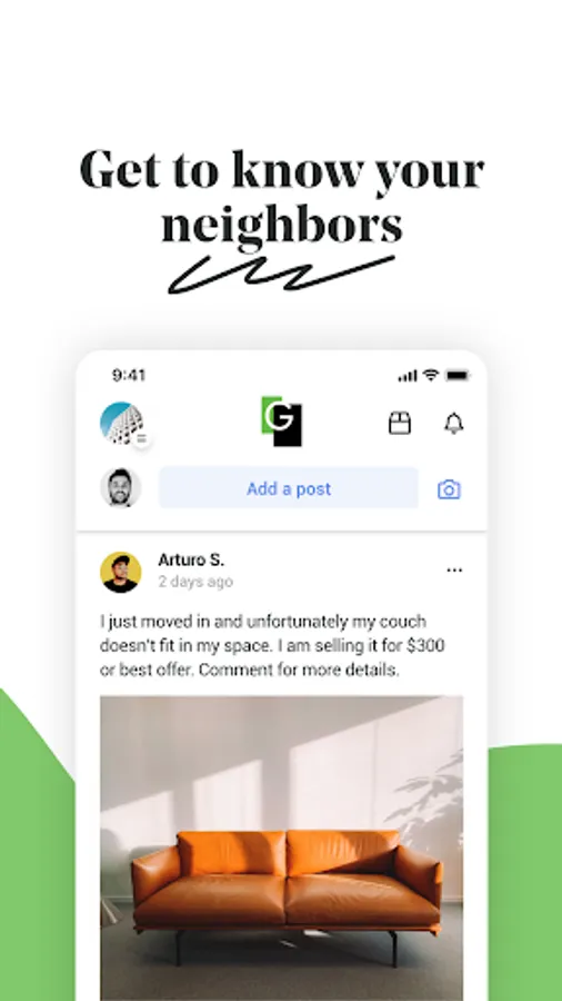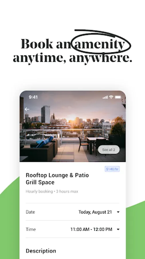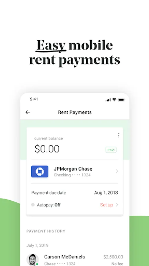 • Pay rent right from the app with your credit card, debit card, or e-check and set up scheduled payments to avoid late fees.