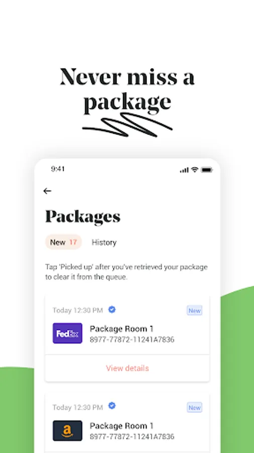 • Receive package delivery notifications in-app, through email or via text (where applicable)