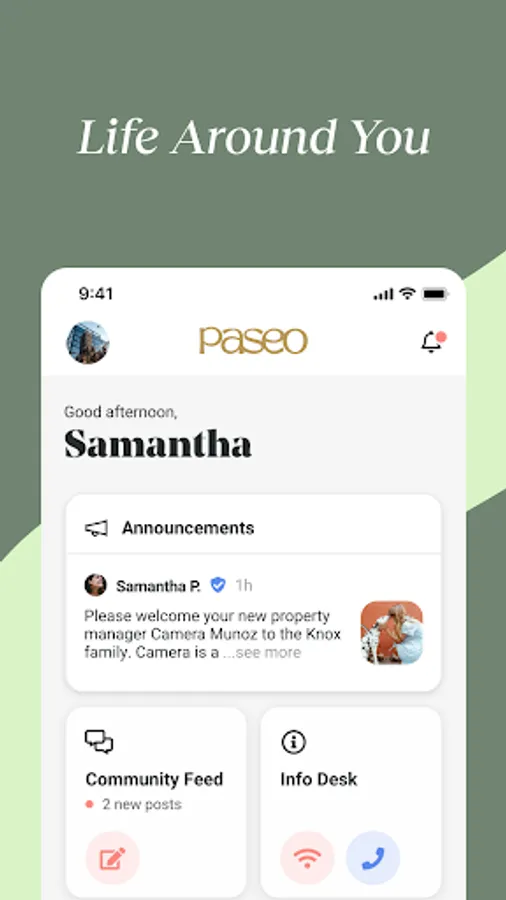 Downtown Austin on your doorstep. Live music. Street food. Never-ending nightlife. Stunning scenery. Diverse wildlife. And the warmest of welcomes from your new neighbors. The Paseo app is built exclusively for residents, making everyday living easy. Reserve amenities, submit service requests, pay rent, message the team, and track packages — all from your phone. Access exclusive resident offers, explore curated services, and stay connected to everything happening at Paseo.