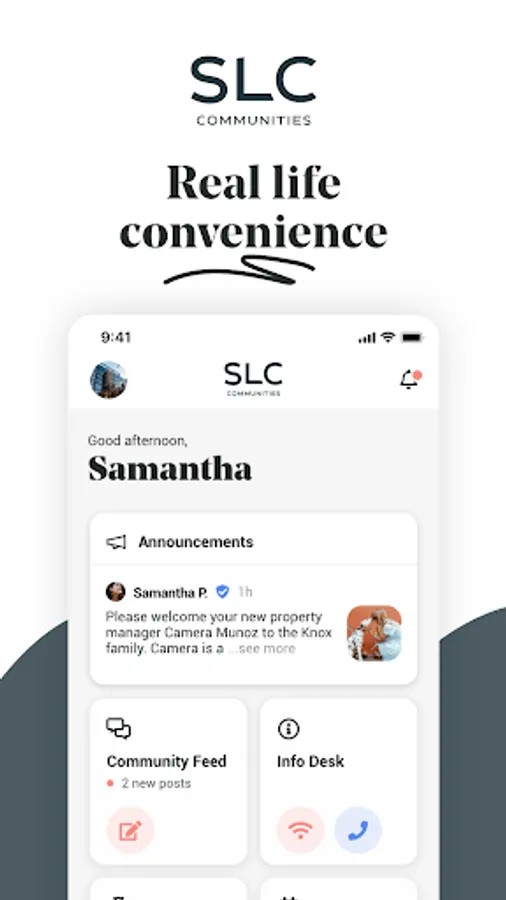 Once you're settled in, SLC Communities transforms into a trusted sidekick. The app is the home base for all your apartment needs.